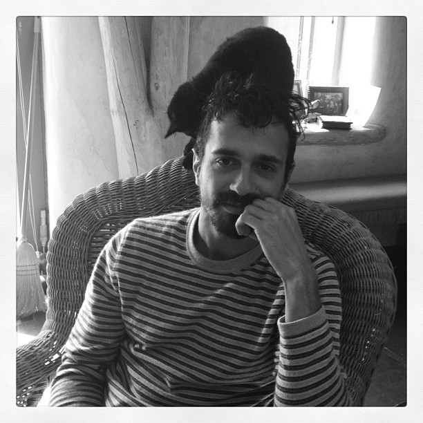 Sunday was a good day. Matt and I went up to Jo’s house in Jamestown for LA’s birthday celebration. Here’s the deal though: the drive from Jamestown up to Jo’s house in LA’s Prius practically gave me a heart attack. That car was not made for tiny, icy roads. But once we got there, we all had fun. There were mimosas and bacon. There was a cat named Flora who was obsessed with Matt’s head. She rubbed her whole body all over his head. He was pretty patient about the whole thing, as you can see.