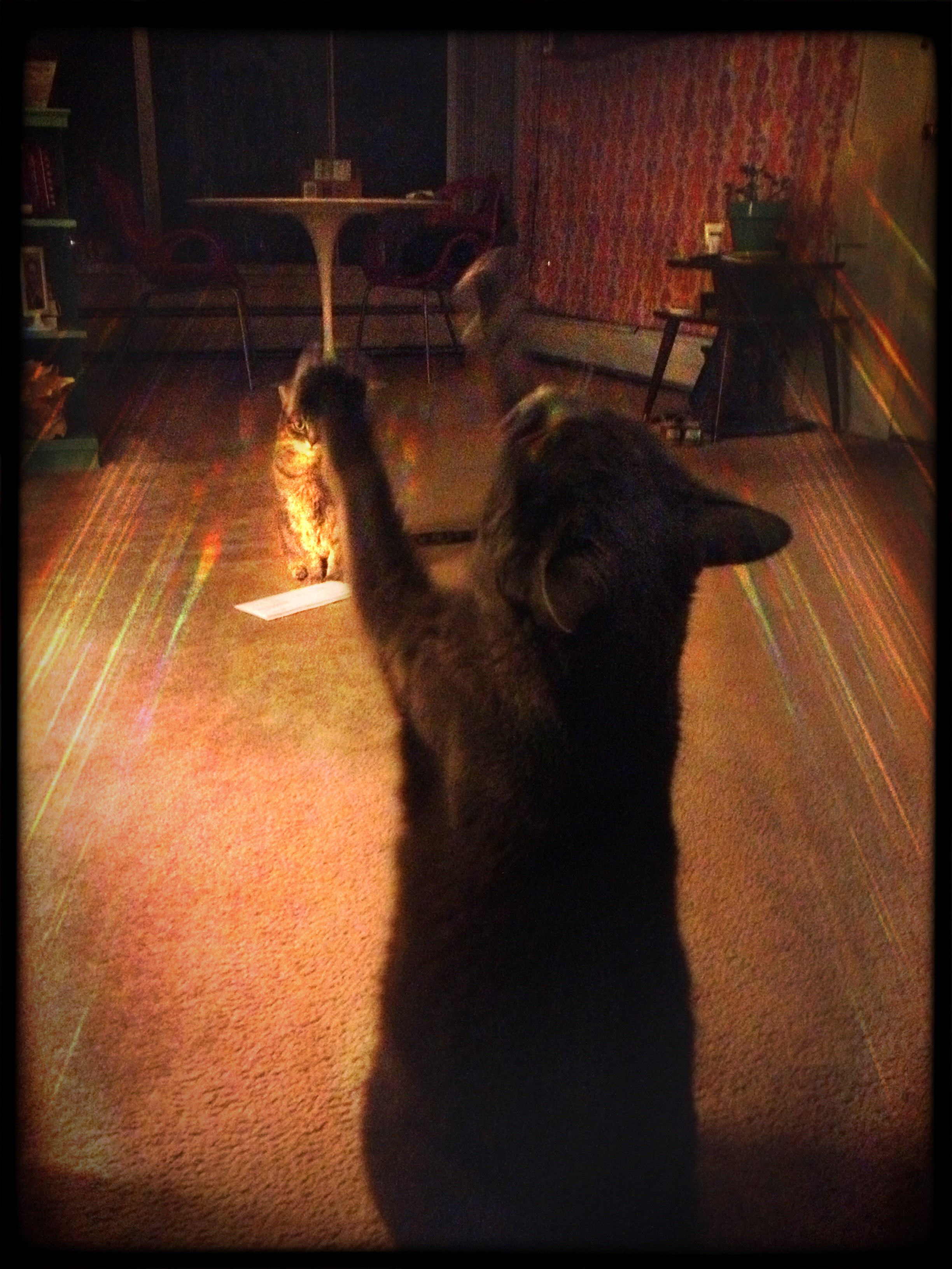 Here’s a picture of Yoshimi dancing to my mix. Clearly: he’s learned a thing or two from his apartment dance rehearsal sessions with LA. Isobel is taking copious notes, as always.