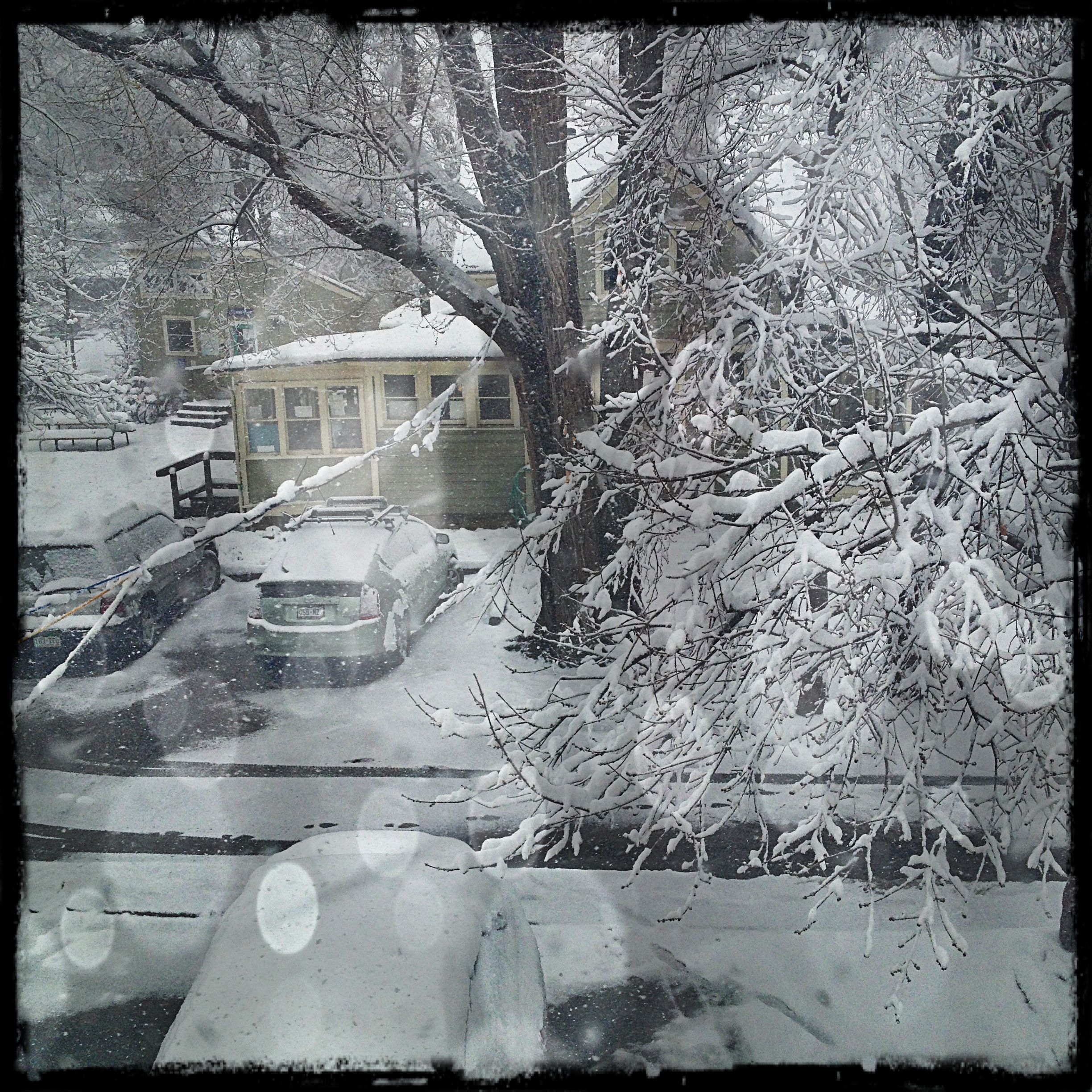 Brenda came to see the show! She seemed to like it. It snowed the day she arrived (of course). This is what it looked like from my office at Naropa early in the day: